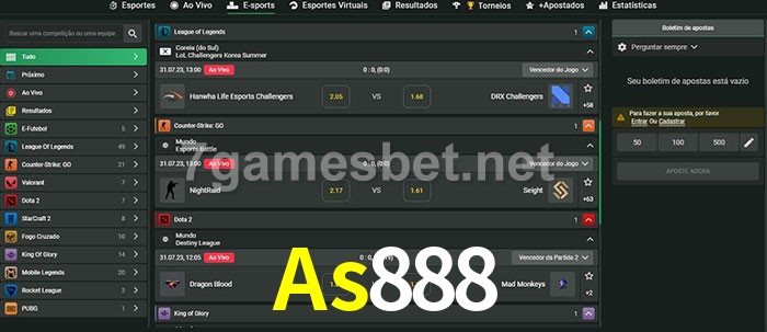 O As888 oferece uma grande seleção de opções de apostas em e-sports com probabilidades competitivas